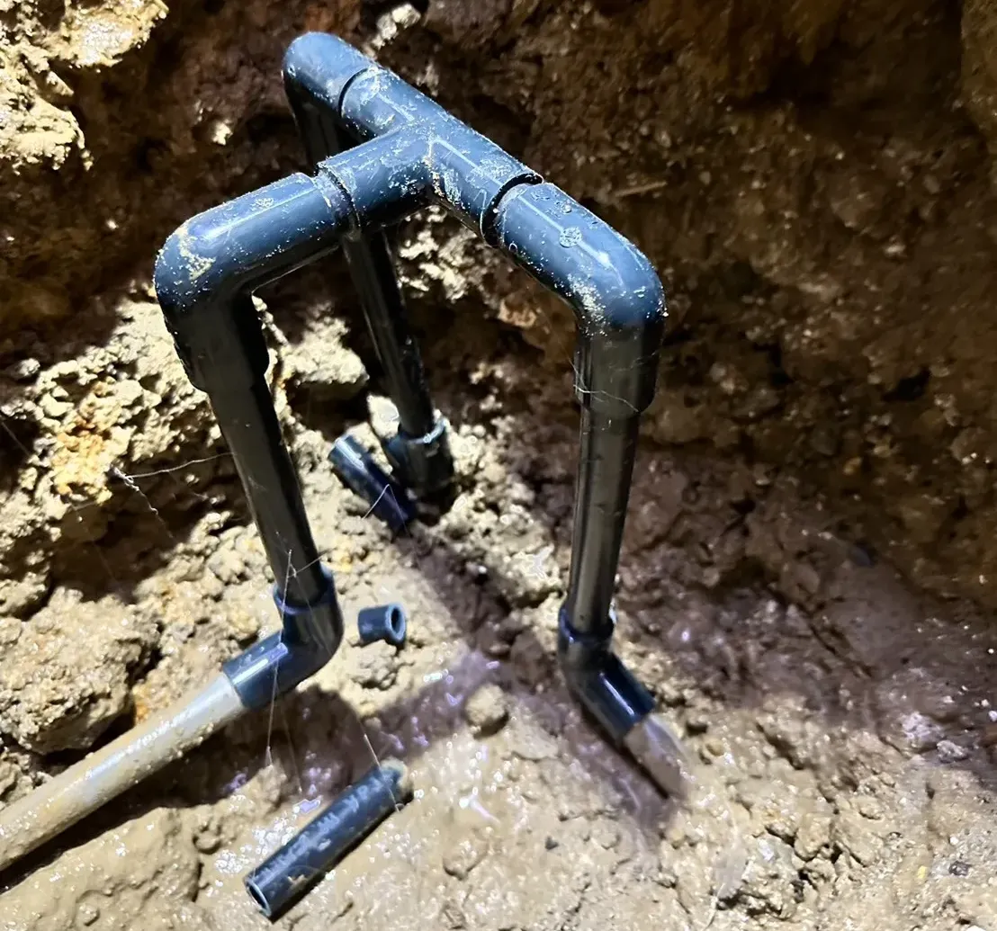 漏水調査を行い埋設配管からの水漏れ発生を特定しました。今回は、配管の接続部分の外れによりそこから水漏れが発生していました。修理では、接続部分を取り外し新たな配管を設置。同時に排水経路を見直し、スムーズな排水を確保できるよう整備を行いました。接続不良や排水不良のリスクを抑え安定した排水機能を取り戻しました。