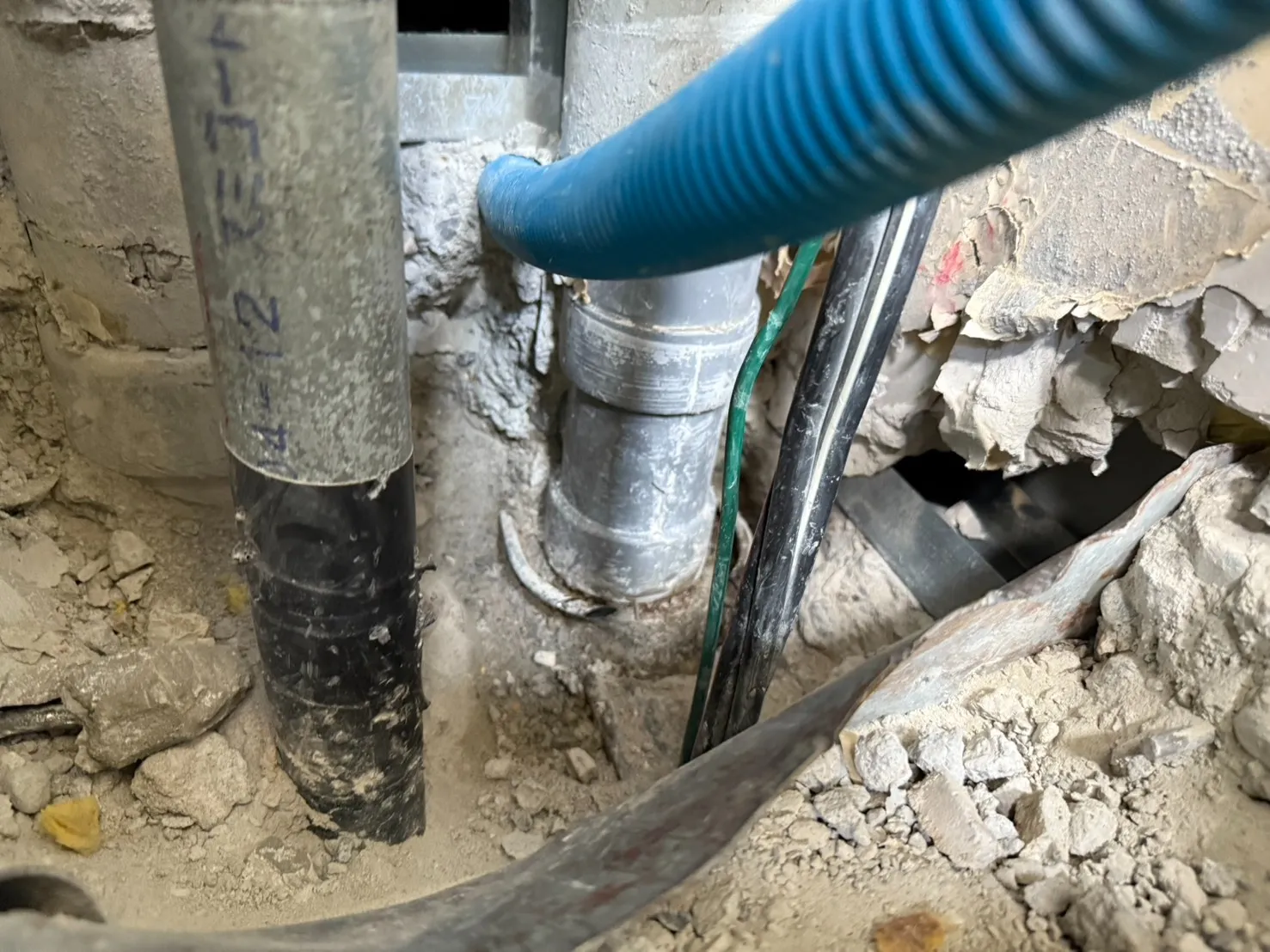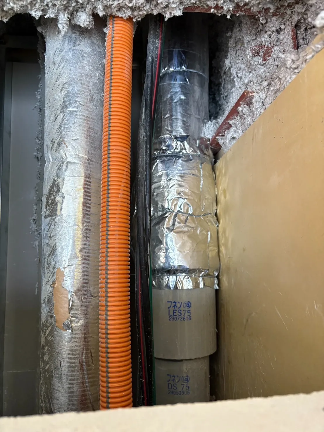 VP75とは、VP管の呼び径が75mmである規格を指します。 VP管は、耐食性・耐久性に優れ、主に建物の排水管や給水管として広く使用されています。VP管にはJIS規格があり、VP75はその中でも直径が75mmである一般的なサイズです。今回の事例では、約20年使用されたパイプシャフト内土間コンクリート下の排水管接合部に施工不良があったと考えられます。