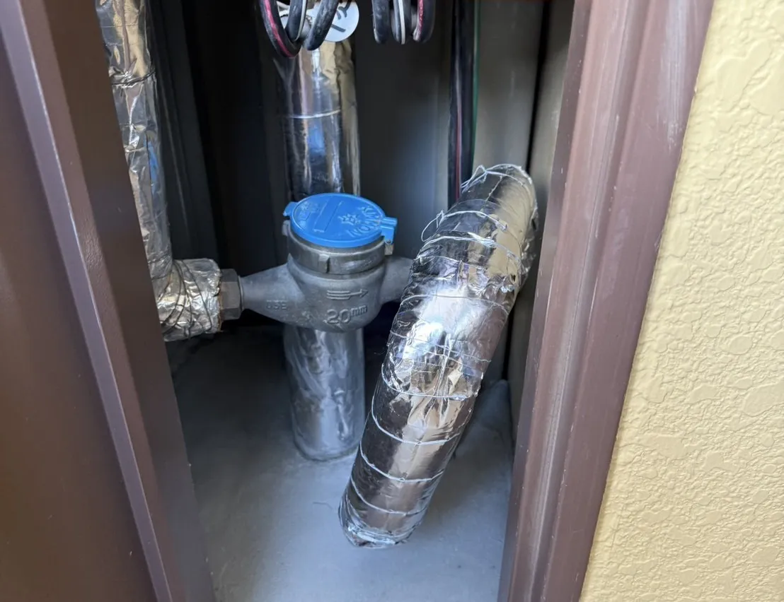 保温工事とは、給水管や給湯管など、管の外側をグラスウールやポリエチレンフォームなどの保温材で覆う工事です。 冬期の凍結防止、給湯管の熱損失を防ぐ省エネ効果、そして配管表面の結露防止のために施工されます。修理後、当社で保温工事も一貫して完了できたことで、修理箇所の耐久性を高め、長期的な安心をお客様にご提供することができました。配管の修理だけでなく、付帯する専門工事まで自社で完結できることが、当社の強みの一つです。