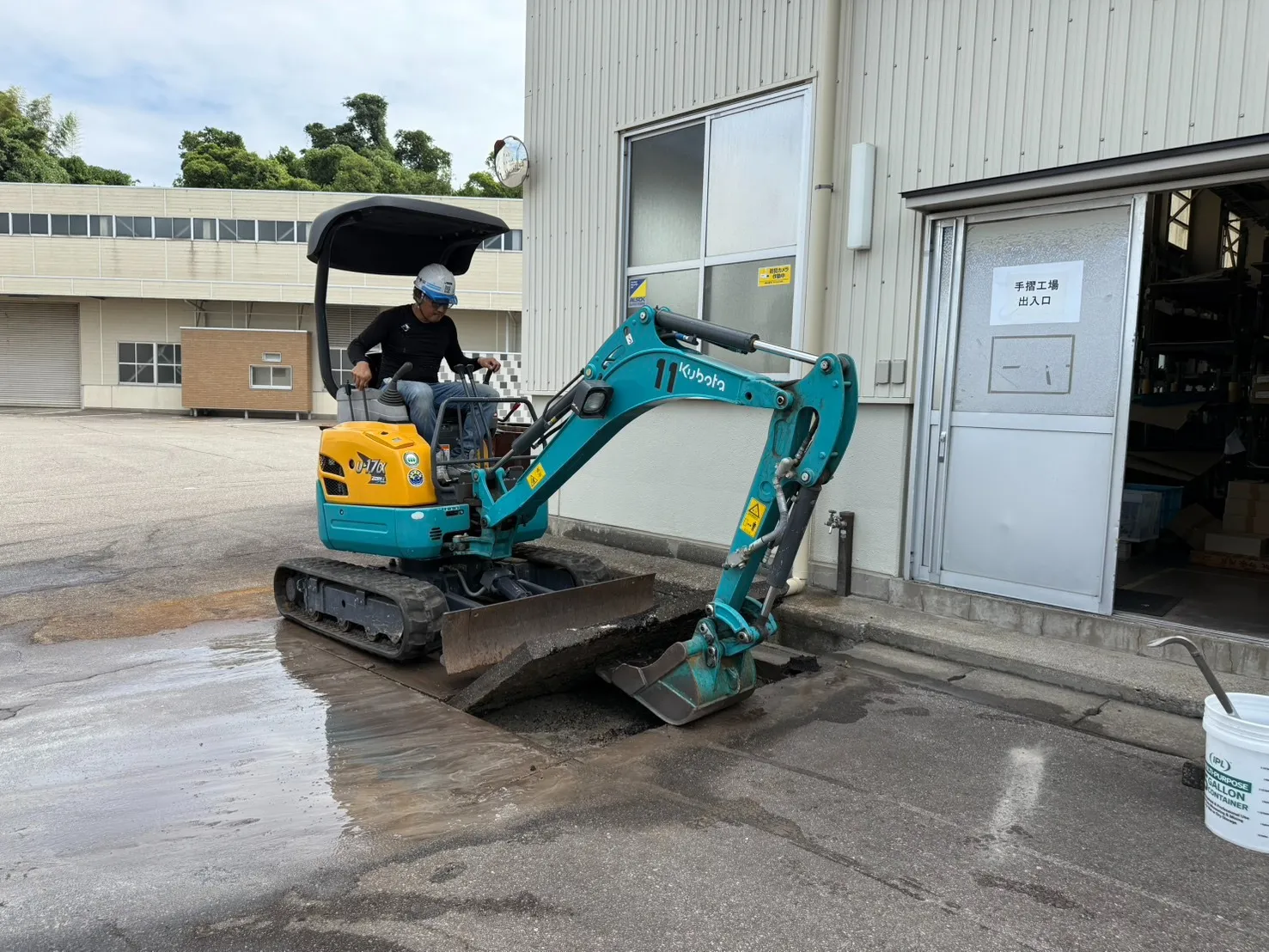 状況 | 水道料金が上がり、舗装から広範囲で水が湧き上がっていた。 古い鋼管が埋設されており、腐食により自然断裂が発生。 |